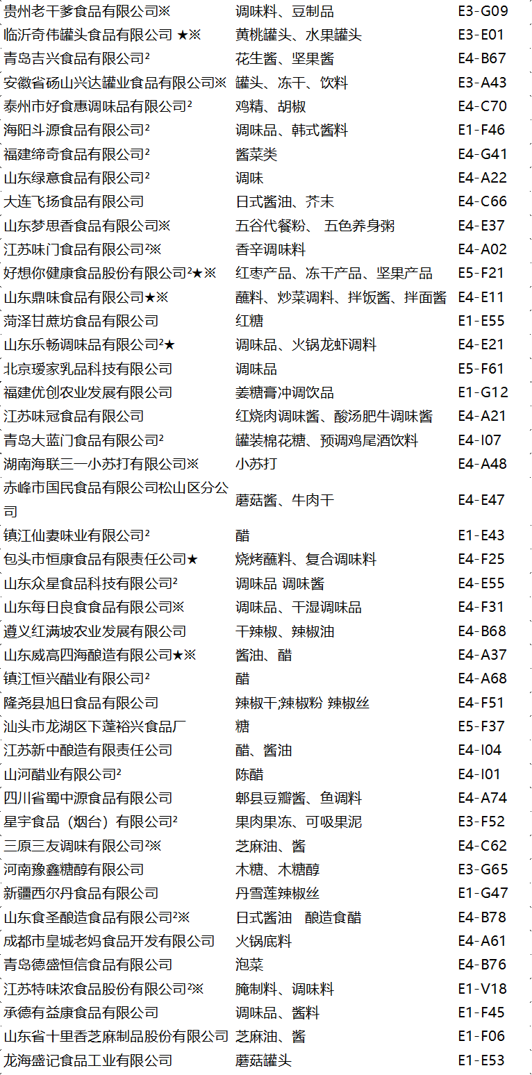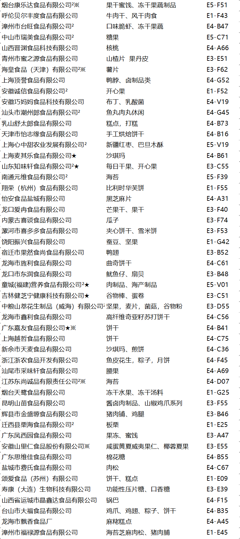 在食品板块的参展商中,有“爆品制造机”,高端红枣销量一路走俏的好想你健康食品股份有限公司;有区域龙头代表、水果深加工企业临沂奇伟罐头食品有限公司;副食调类中,有行业知名企业山东每日良食食品有限公司、自有品牌合作经验丰富的华海顺达食品有限公司;在休闲食品细分领域,优秀企业百花齐放,果干、糖巧、炒货、膨化食品,龙头企业代表比比皆是。