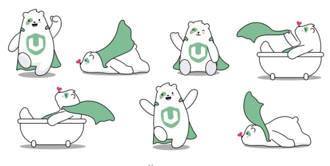 在视觉形象设计上,“颂宝”以熊及熊猫为原型,采用白色和清新绿为IP主色,通过偏暖情调的清新自然风,传递温暖、居家、可靠的感觉。其腹部的U型盾代表两层含义,一层代表优颂品牌,来自汉字“优”的拼音;一层代表给消费者带来优质的服务与呵护,与品牌理念做强关联结合。