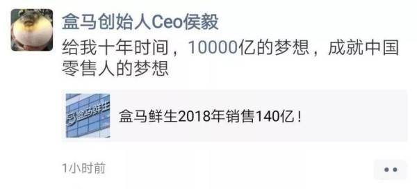 去年底开始,侯毅曾在多个场合强调盒马的发展目标:将打造10个十亿级的、100个亿级的、1000个千万级的盒品牌。今年5月,更豪言要用十年的时间,完成盒马万亿规模收入的新零售梦想。