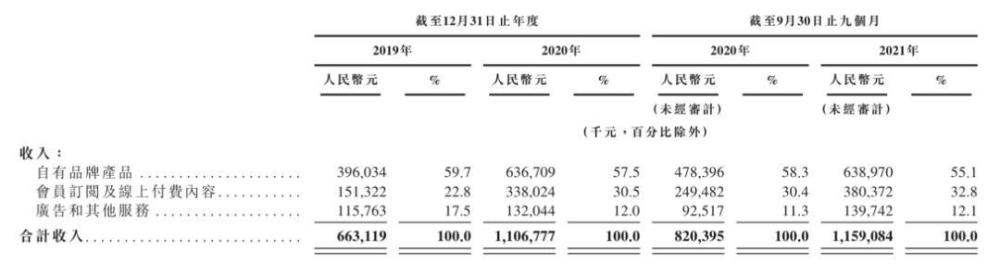 其中,该公司自有品牌产品的销售,主要指健身设备,包括Keep智能单车、Keep手环、智慧秤及跑步机以及配套运动产品,包括健身装备、服饰及食品。招股书显示,从2019年到2021年9月末,Keep自有品牌产品一直是其最大的收入来源,占比均超过当期总营收的50%。